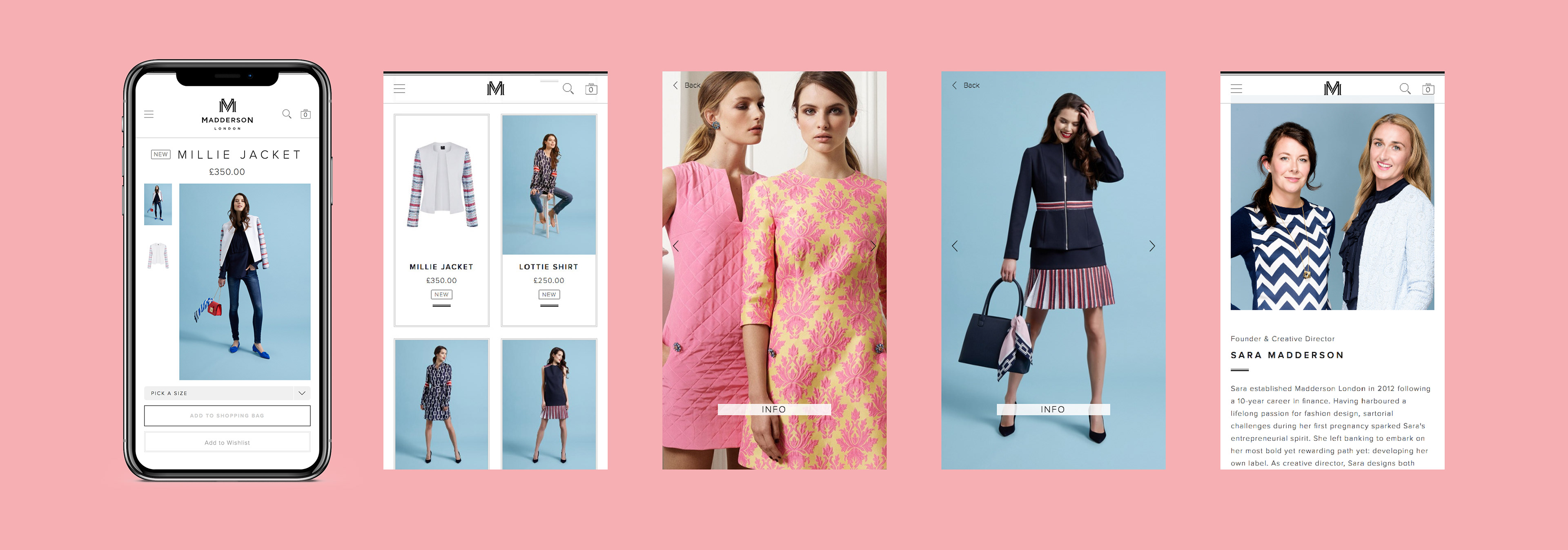 While pregnant, Sara Madderson noticed an opportunity in the maternity fashion market. Our positioning strategy for Madderson London was to place it amongst top fashion brands rather than high street chains. It needed to represent and align with the Madderson London fashion design style and ethos while evoking a feeling of fashion heritage.