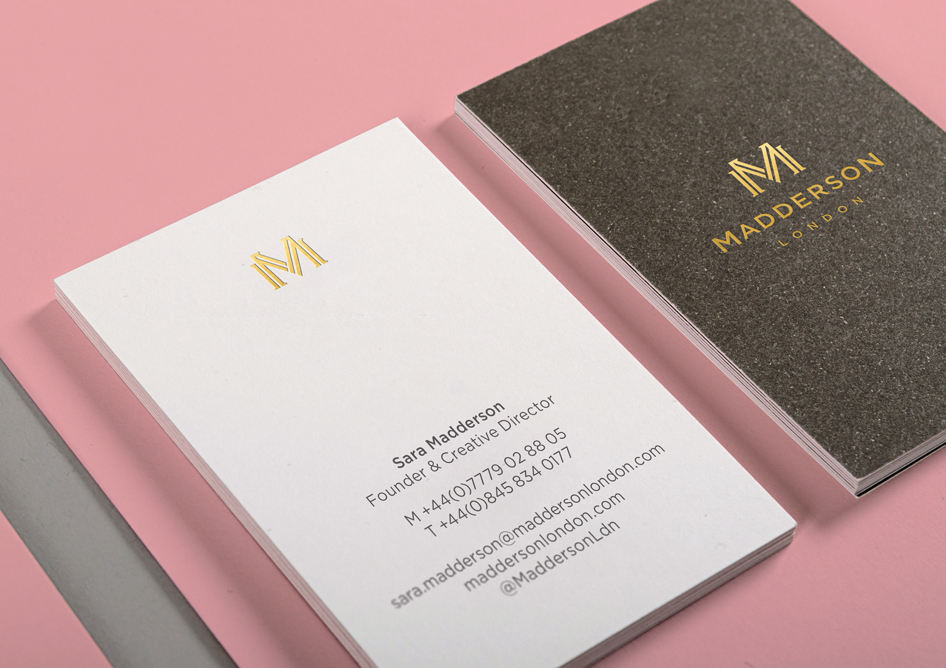 We defined brand character and an image vocabulary; polished, glamourous, powerful, vital, elegant & refreshing. The challenge then was to strike the ultimate balance between classic and contemporary. A spirit of craftsmanship, luxury and style was woven through the Madderson London identity. The strong pillars evoke classic heritage while the inline-styled icon, with hint of a plunging neckline, contribute a feminine contemporary balance.