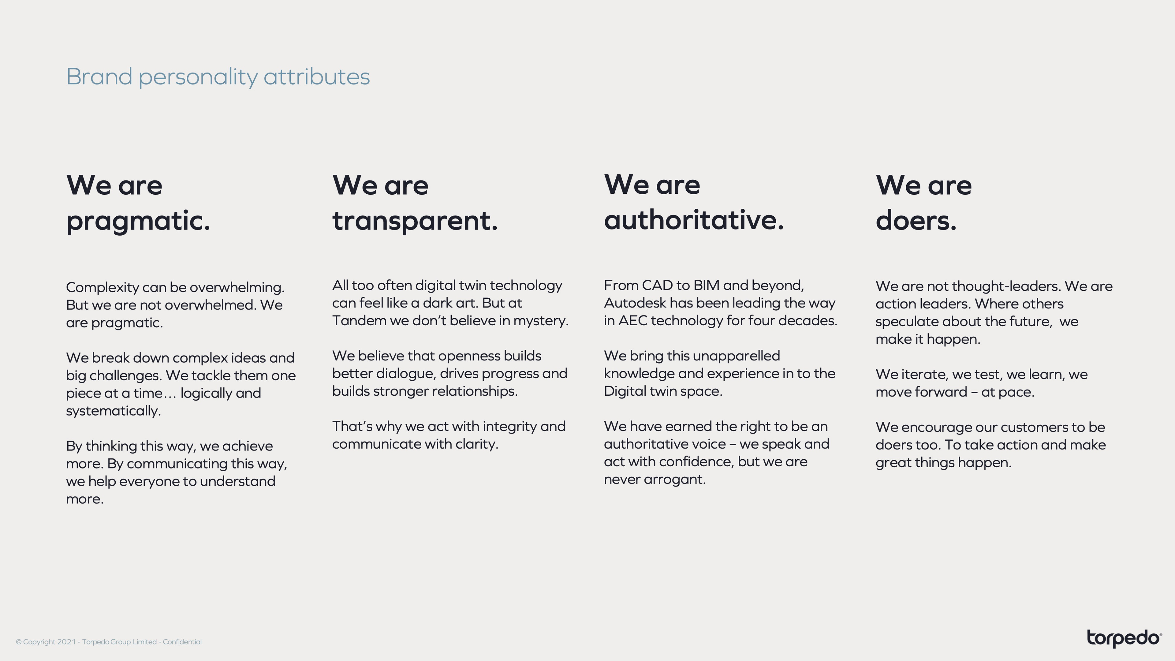 “Torpedo’s holistic approach to brand positioning helped Autodesk Tandem, a new digital twin solution, establish its brand identity and achieve industry recognition. They worked in partnership with our marketing team to create a visual identity and a positive customer experience that solidified our position in the digital twin landscape. ”